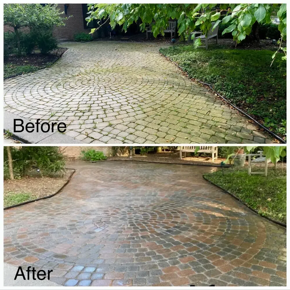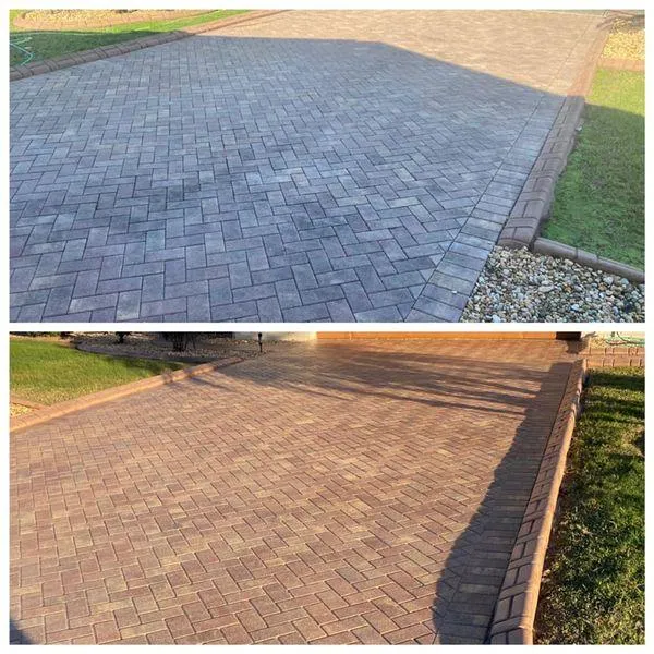 Seal Application - We apply a two-coat sealer for maximum protection. The first coat serves as a flood coat to solidify the sand, preventing paver shifting and organic growth. The second coat provides additional protection and enhances the aesthetic appeal.